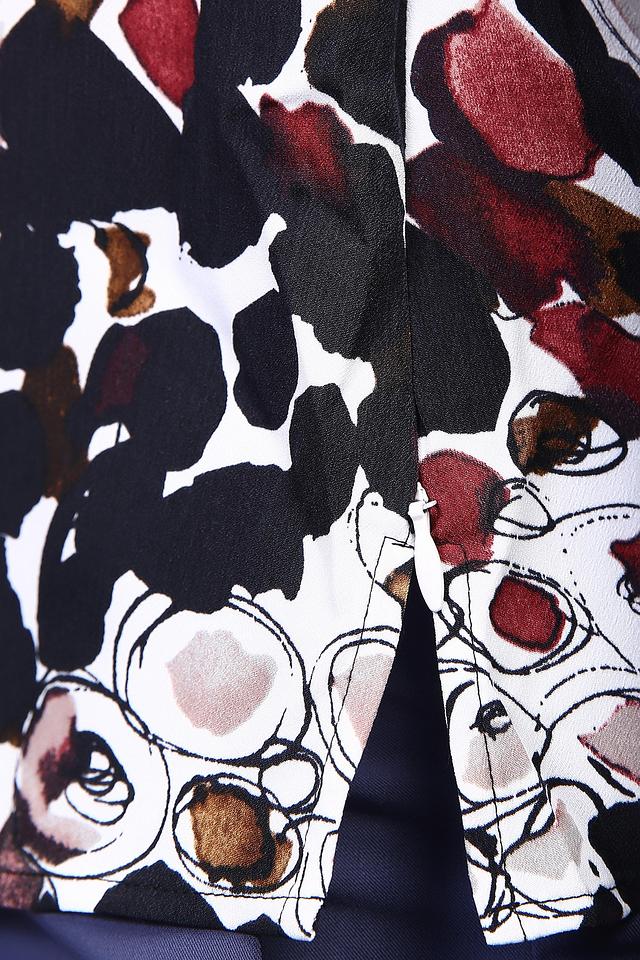 Эта блуза от Just Valeri – отличный выбор для создания повседневного и элегантного образа. Блуза выполнена в белом цвете и украшена ярким абстрактным принтом, состоящим из различных цветовых пятен.