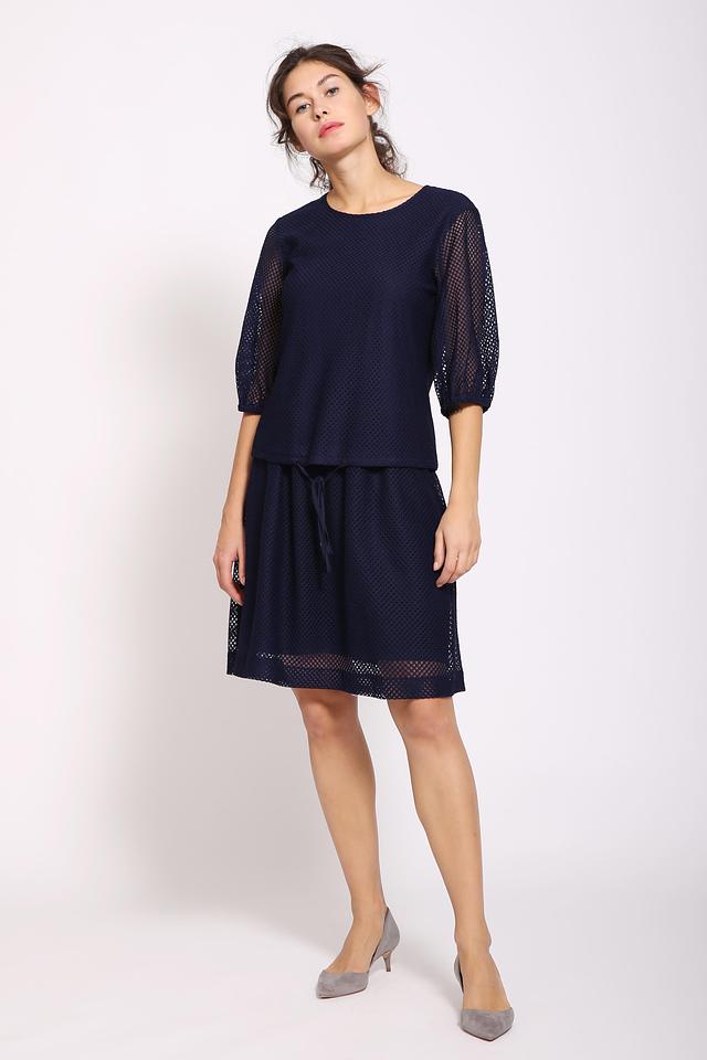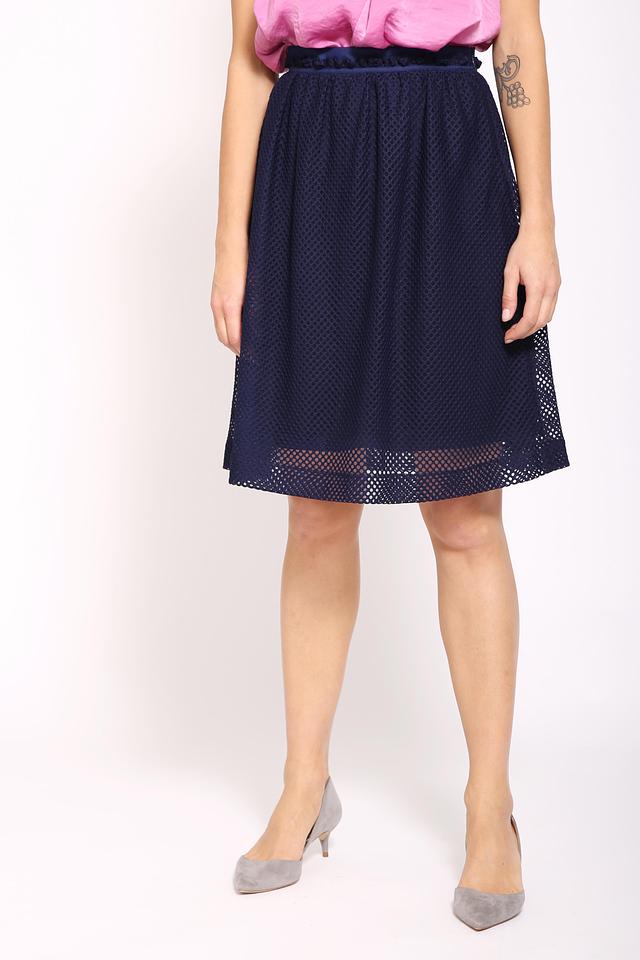 Юбка Just Valeri тёмно-синего цвета – это элегантная модель длиной до колена, выполненная из плиссированной ткани с перфорацией. Юбка имеет удобный эластичный пояс и идеально подходит для создания стильных образов. Состав: полиэстер 100%, Состав_подкладка полиэстер 100%