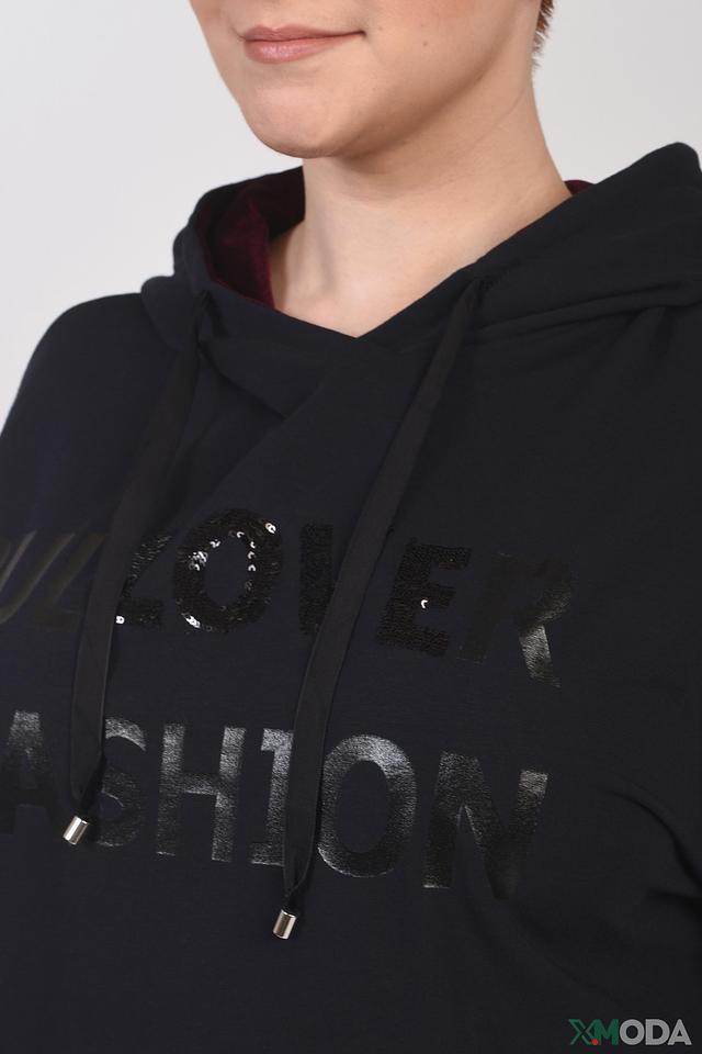 Чёрное платье-худи от Just Valeri – это стильное и комфортное решение для повседневного образа. Модель выполнена из мягкого трикотажа и украшена эффектной надписью "I LOVE FASHION". Состав: Состав_2 полиэстер 100%, хлопок 57%, модал 38%, спандекс 5%