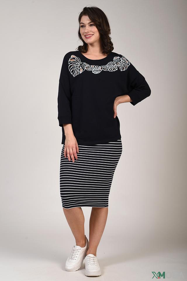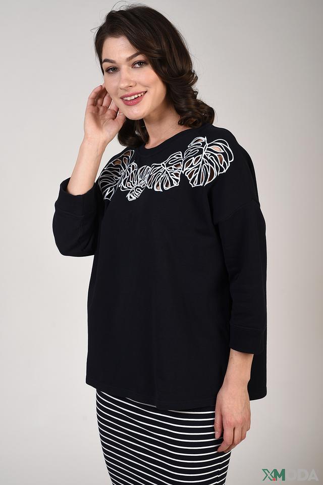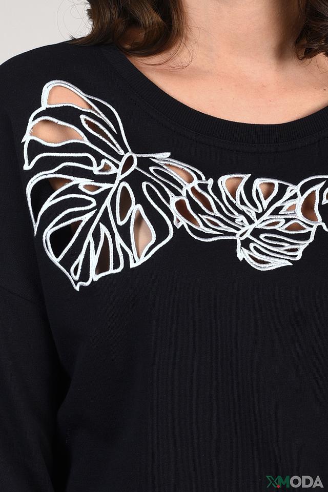 Женский пуловер Just Valeri чёрного цвета с оригинальным декором в виде белых листьев. Модель свободного кроя с рукавами 3/4 выполнена из мягкого хлопка, обеспечивающего комфорт в носке. Состав: хлопок 100%