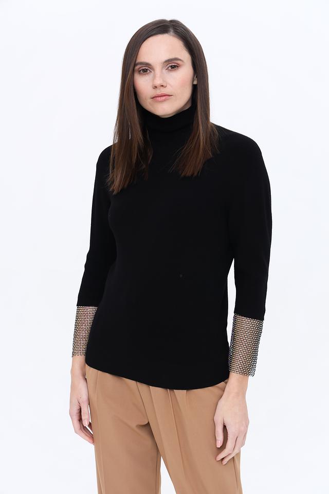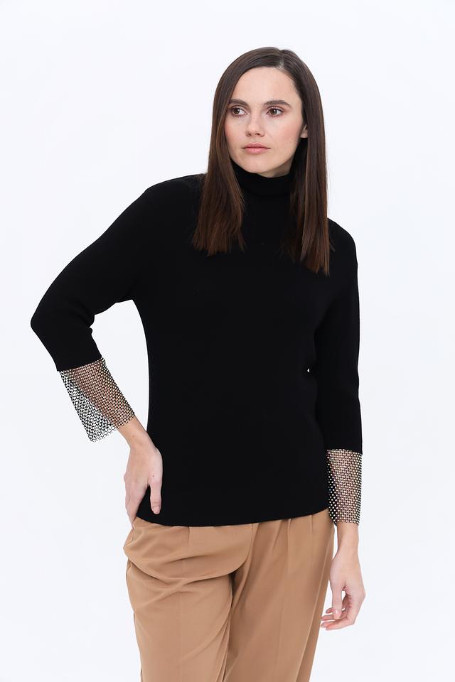 Чёрная водолазка Kaos с оригинальными сетчатыми рукавами станет стильным дополнением к вашему гардеробу. Изготовлена из мягкого и приятного к телу сочетания вискозы и полиэстера, обеспечивая комфорт в носке. Состав: вискоза 72%, полиэстер 28%