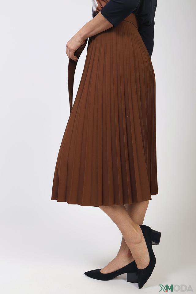 Юбка Kaos коричневого цвета – это стильная модель плиссированного кроя с поясом. Юбка выполнена из полиэстера с добавлением вискозы и эластана, что обеспечивает комфорт и хорошую посадку по фигуре. Состав: полиэстер 68%, вискоза 28%, эластан 4%