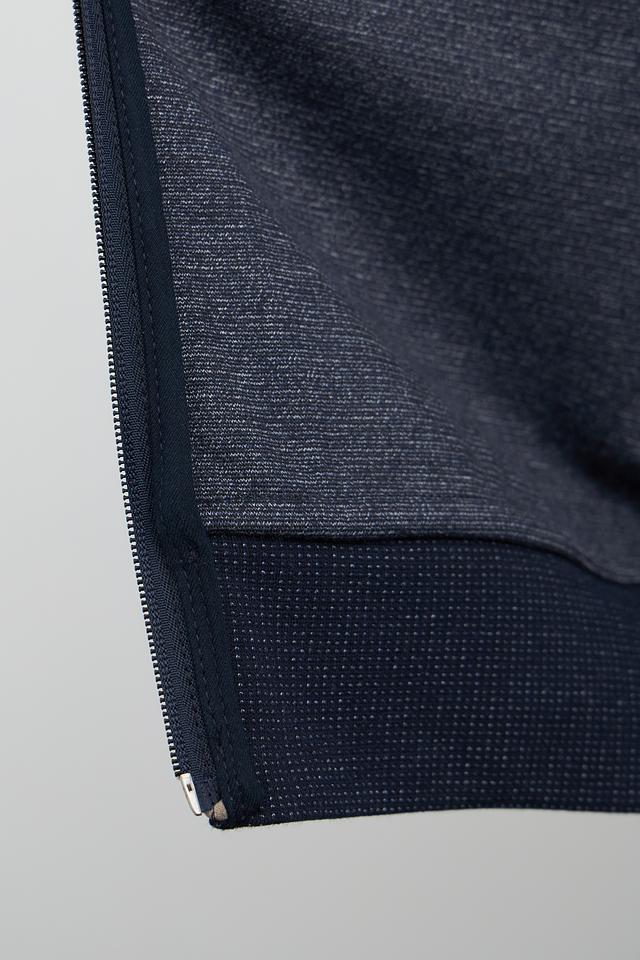 Кардиган имеет текстурную поверхность, которая добавляет ему визуальный интерес. Застежка-молния золотистого цвета контрастирует с основным цветом, придавая изделию стильный акцент. Высокий воротник-стойка обеспечивает дополнительную защиту от ветра.
