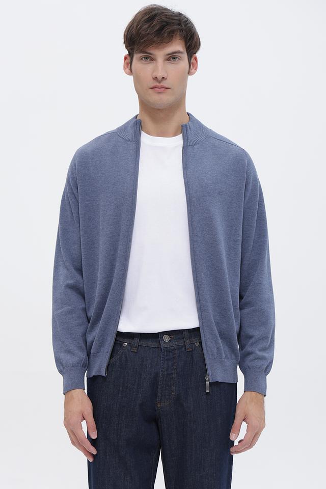 Мужской кардиган Casa Moda голубого цвета с застёжкой на молнии. Изготовлен из 100% хлопка, обеспечивающего комфорт и воздухопроницаемость. Идеальный выбор для создания стильного и удобного образа. Состав: хлопок 100%