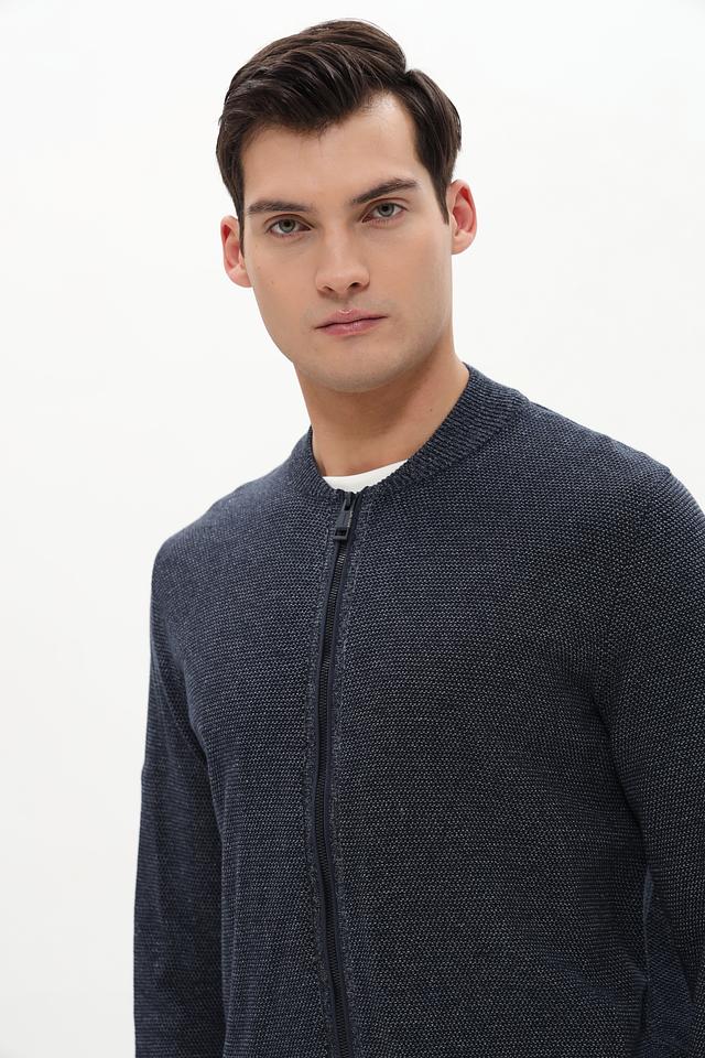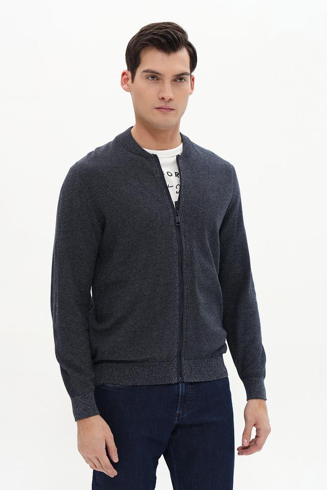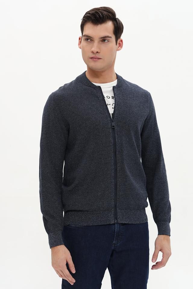 Мужской кардиган Casa Moda серого цвета с текстурированным узором. Изготовлен из 100% хлопка, обеспечивающего комфорт и воздухопроницаемость. Застежка – молния. Состав: хлопок 100%