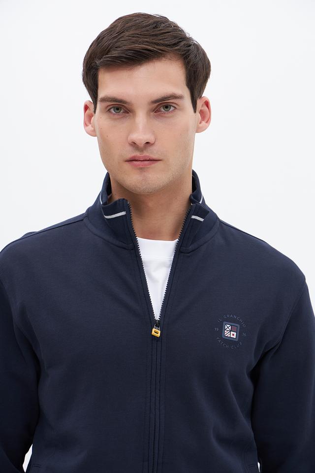Мужской кардиган Granchio тёмно-синего цвета на молнии, выполнен из 100% хлопка. Удобный и практичный выбор для повседневного гардероба. Классический крой и лаконичный дизайн. Состав: хлопок 100%