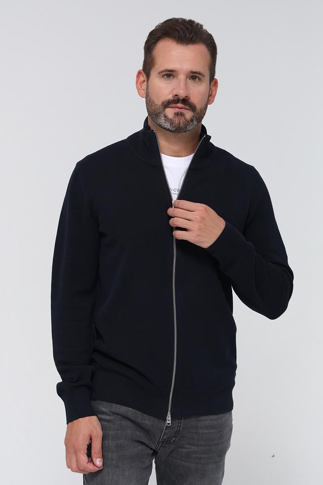 Мужской кардиган Marc O Polo тёмно-синего цвета на молнии – это стильное и комфортное решение для прохладной погоды. Изготовлен из 100% хлопка, обеспечивающего мягкость и удобство в носке. Классический крой и минималистичный дизайн делают этот кардиган универсальным дополнением к любому гардеробу. Состав: хлопок 100%