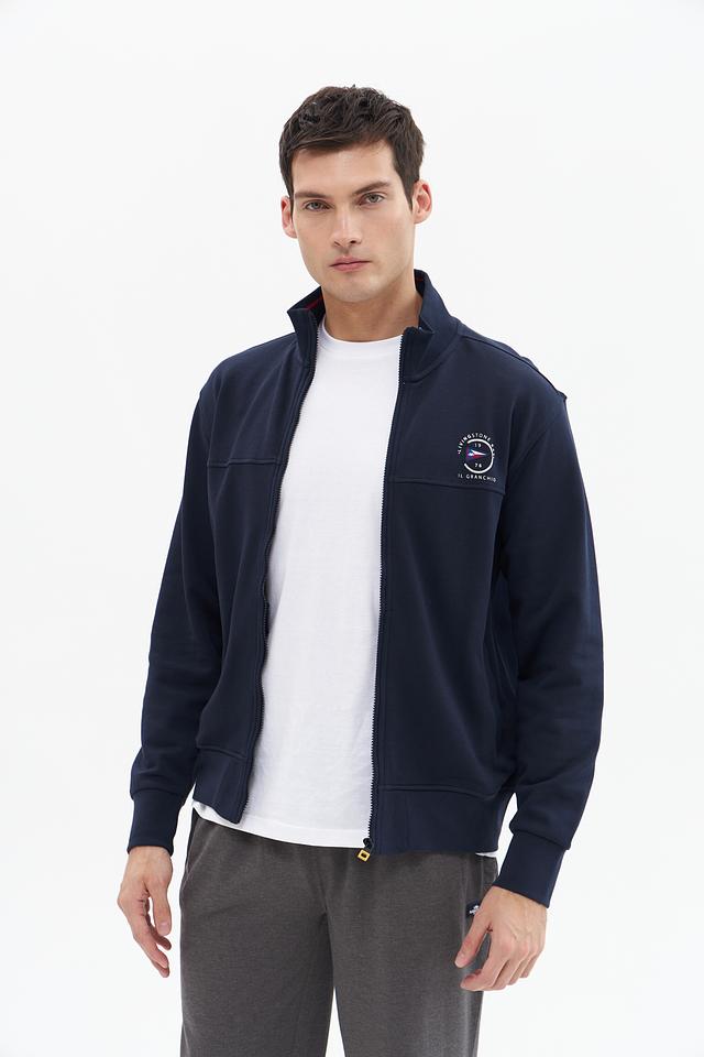Мужской кардиган Granchio синего цвета с круглым логотипом на груди и удобной молнией. Изготовлен из мягкого хлопка, обеспечивающего комфорт в повседневной носке. Идеально подходит для создания стильного и расслабленного образа. Состав: хлопок 100%