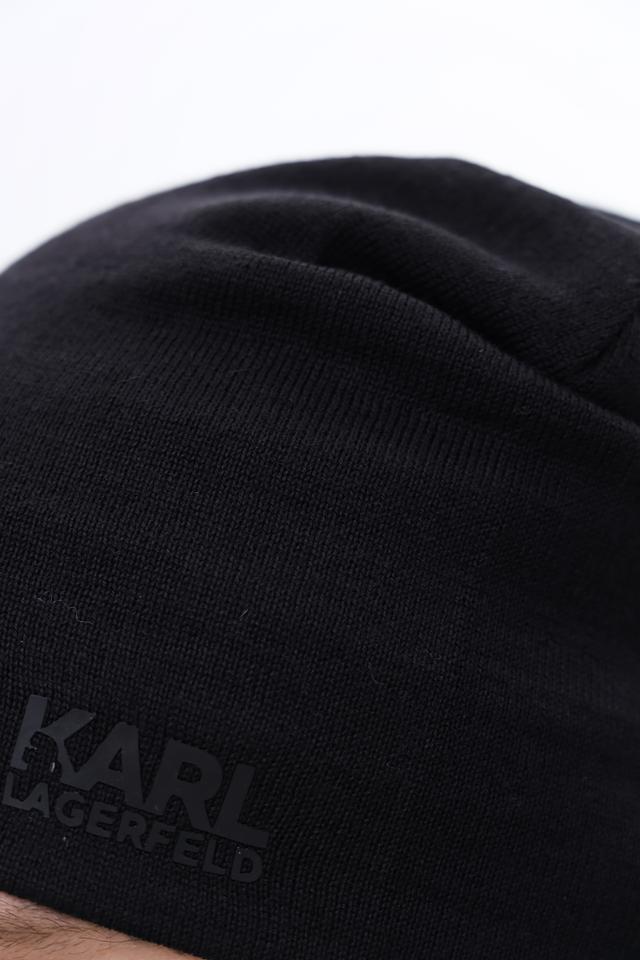 На передней части шапки расположен логотип бренда Karl Lagerfeld, выполненный в тон изделия, что придаёт ей элегантный и узнаваемый вид. Шапка плотно прилегает к голове, защищая от ветра и холода.