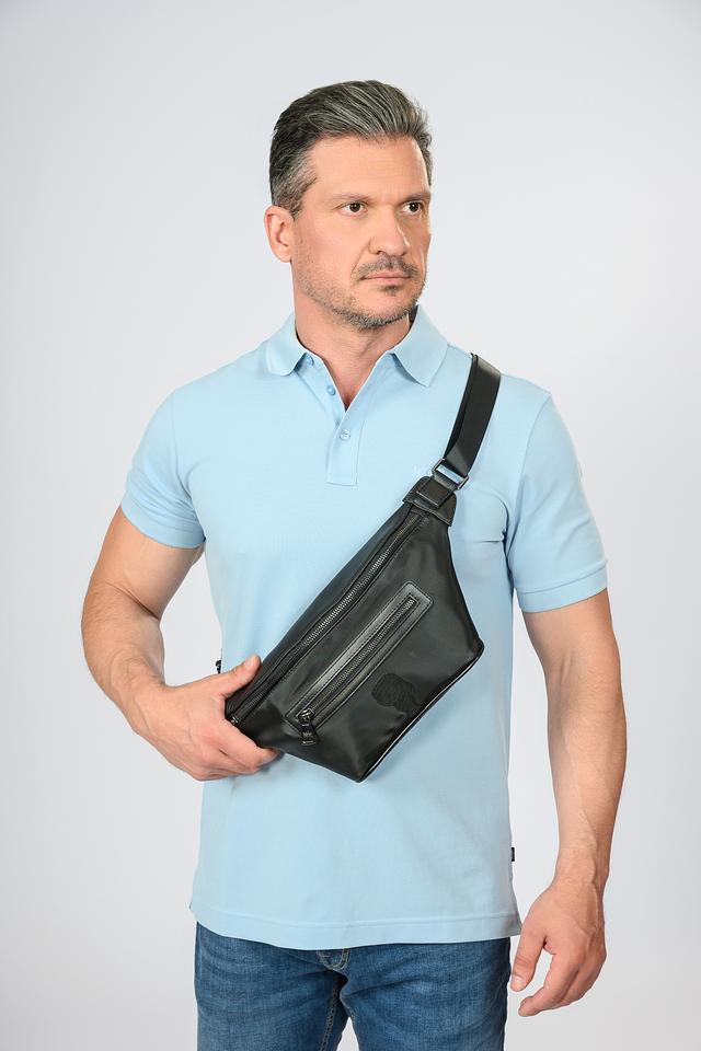 Модель оснащена регулируемым ремнем, который обеспечивает комфортную посадку. На передней панели сумки расположен рельефный логотип бренда, добавляющий узнаваемости. Сумка имеет несколько отделений на молнии, что позволяет удобно организовать пространство для хранения телефона, кошелька, ключей и других необходимых мелочей.