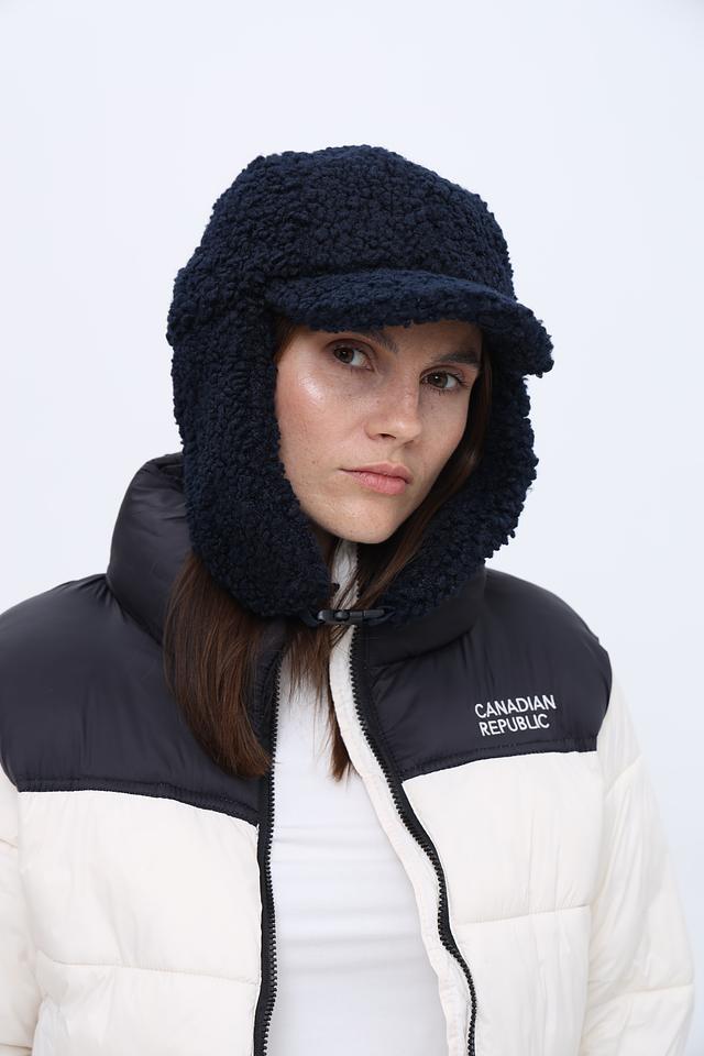 Дизайн шапки сочетает в себе практичность и стиль. Тёмно-синий цвет придает изделию универсальность, позволяя легко сочетать его с различной верхней одеждой. Ушки обеспечивают дополнительную защиту от ветра и мороза, а удобный крой гарантирует комфортную посадку.