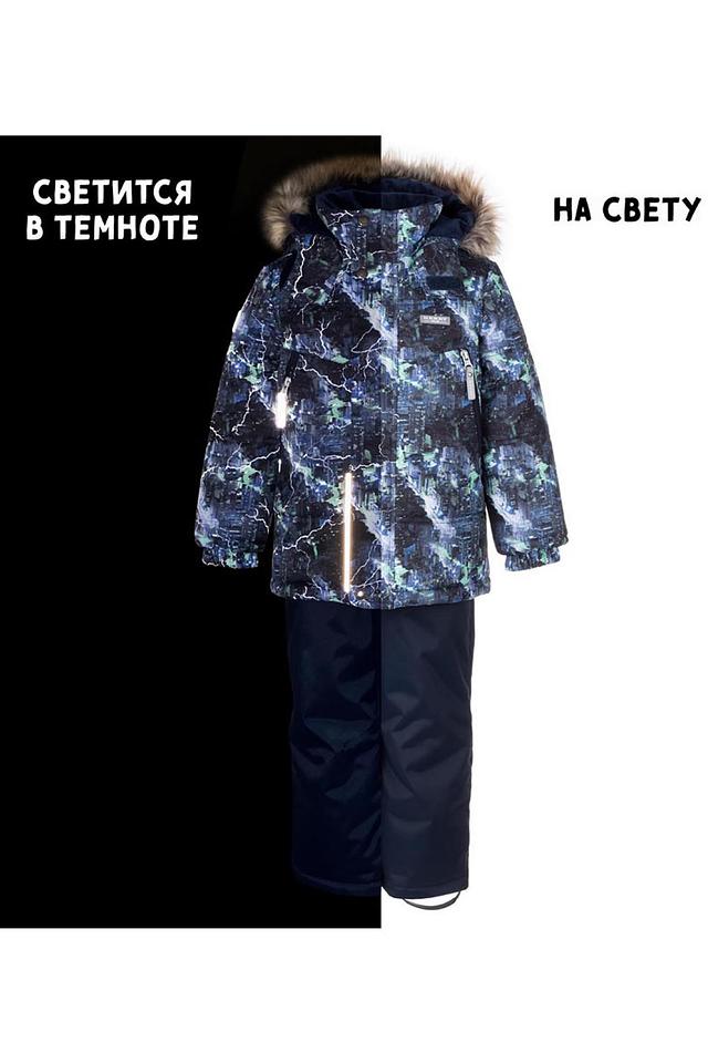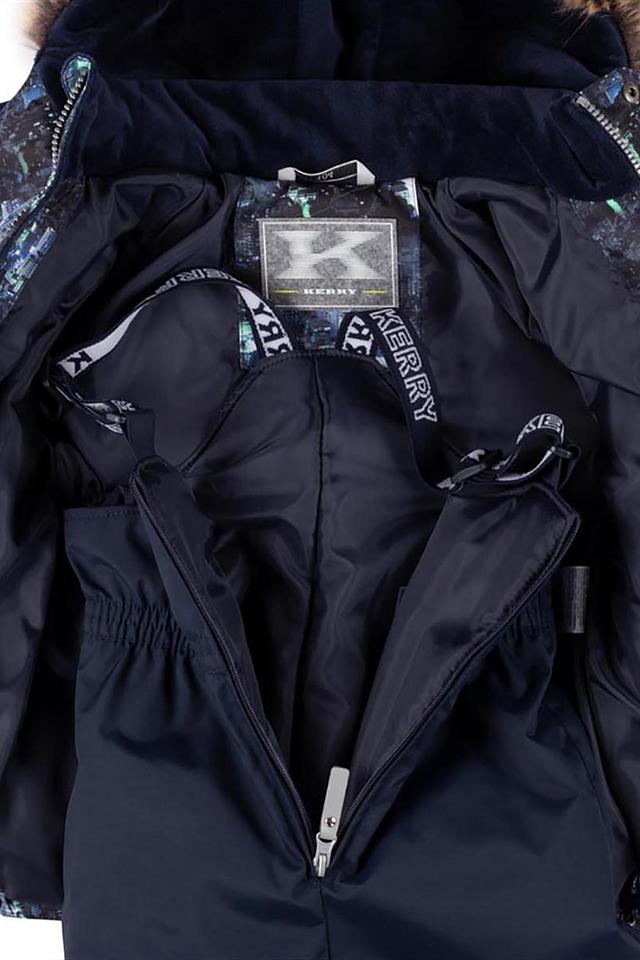Представляем вашему вниманию стильный и функциональный комплект для мальчиков от бренда Kerry. Комплект состоит из куртки и полукомбинезона, выполненных в синей цветовой гамме с оригинальным принтом.