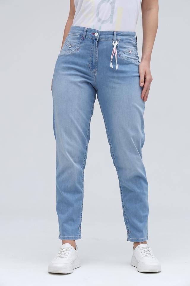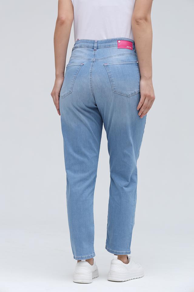 Женские джинсы Ppep. голубого цвета с завязками на поясе — удобная и стильная модель для повседневной носки. Джинсы имеют зауженный к низу крой и эффект потертостей, что придает им современный вид. Состав: хлопок 89%, полибутилентерефталат 8%, эластан 3%