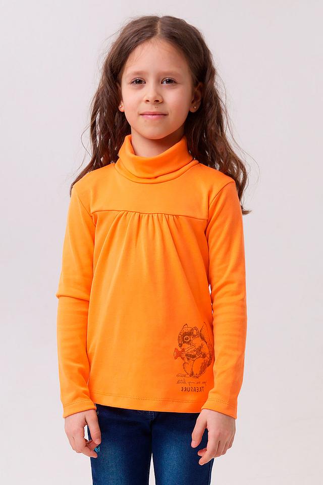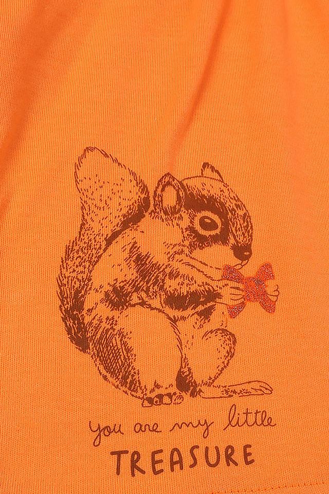 Оранжевый джемпер от КотМарКот для девочки с длинным рукавом и высоким воротником. Модель украшена забавным принтом белки и надписью "You are my little TREASURE". Изготовлен из мягкого и приятного к телу хлопка. Состав: хлопок 100%