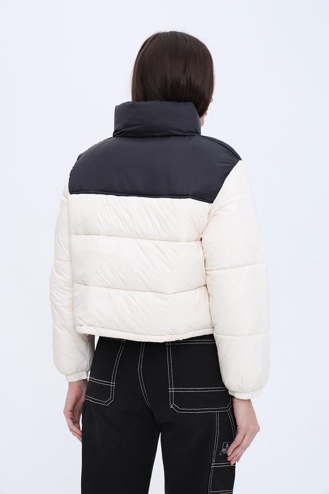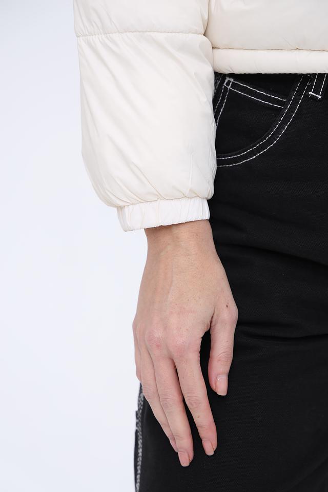 Куртка имеет укороченный крой, который подчеркивает талию и придает силуэту женственность. Выполнена из 100% полиэстера, что обеспечивает легкость, тепло и устойчивость к влаге.