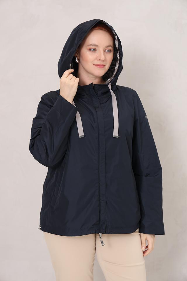 Женская куртка Baronia тёмно-синего цвета с цветочным принтом на подкладке. Модель оснащена капюшоном и имеет удобную застёжку-молнию. Куртка изготовлена из 100% полиэстера, что обеспечивает легкость и практичность. Состав: полиэстер 100%