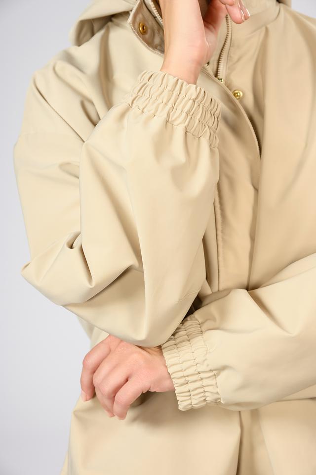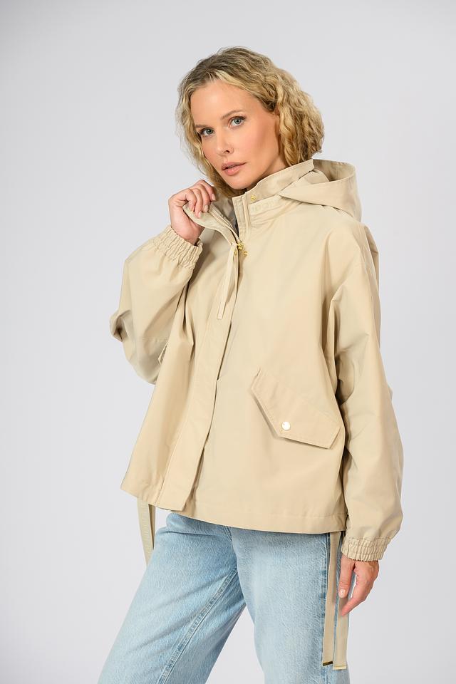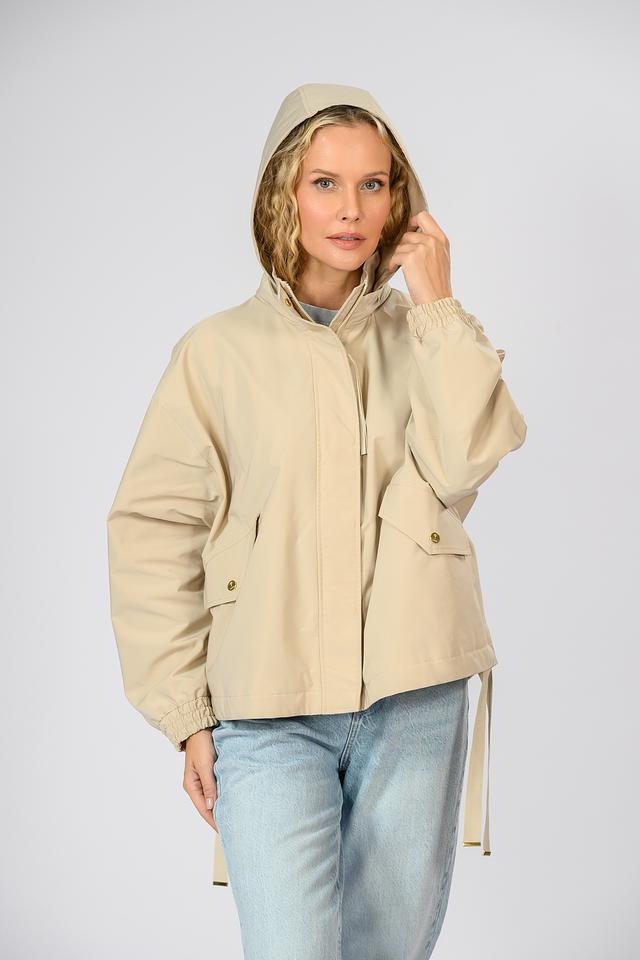 Материал куртки – 100% полиэстер, что делает её лёгкой, прочной и простой в уходе. Эта куртка идеально подойдёт для повседневной носки в прохладную погоду. Особенности кроя включают в себя манжеты на рукавах с завязками и кулиску на талии для регулировки силуэта.
