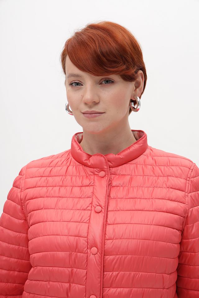 Эта куртка от Lebek выполнена в нежном розовом цвете и имеет стеганую текстуру, которая придает ей современный вид. Модель застегивается на кнопки по всей длине, что обеспечивает удобство и быстроту одевания.