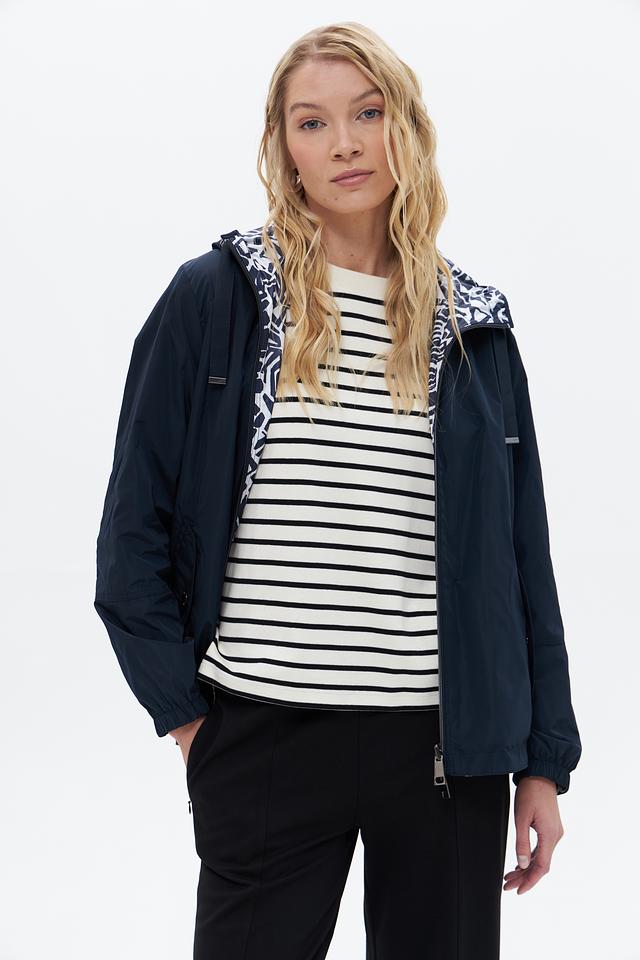 Синяя куртка Lebek с капюшоном – это стильная и практичная модель для повседневной носки. Куртка выполнена из 100% полиэстера, имеет удобный капюшон с принтом и функциональные карманы. Состав: полиэстер 100%