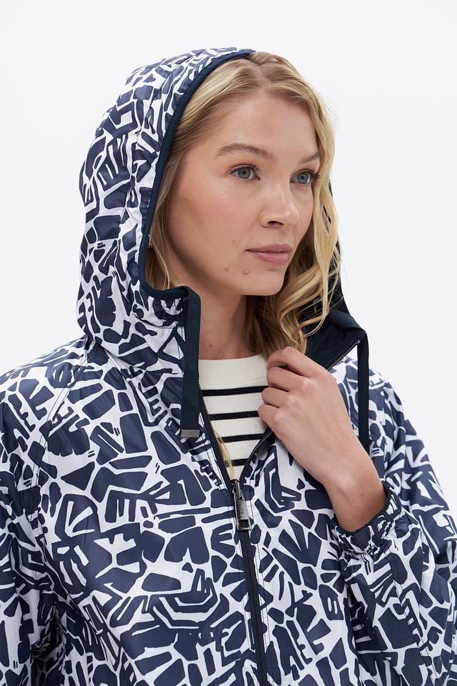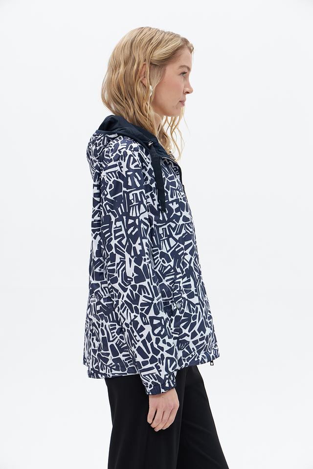 Куртка имеет прямой крой, который не сковывает движения. Капюшон с ярким принтом добавляет образу оригинальности. Застежка-молния позволяет легко регулировать степень защиты от ветра и холода.