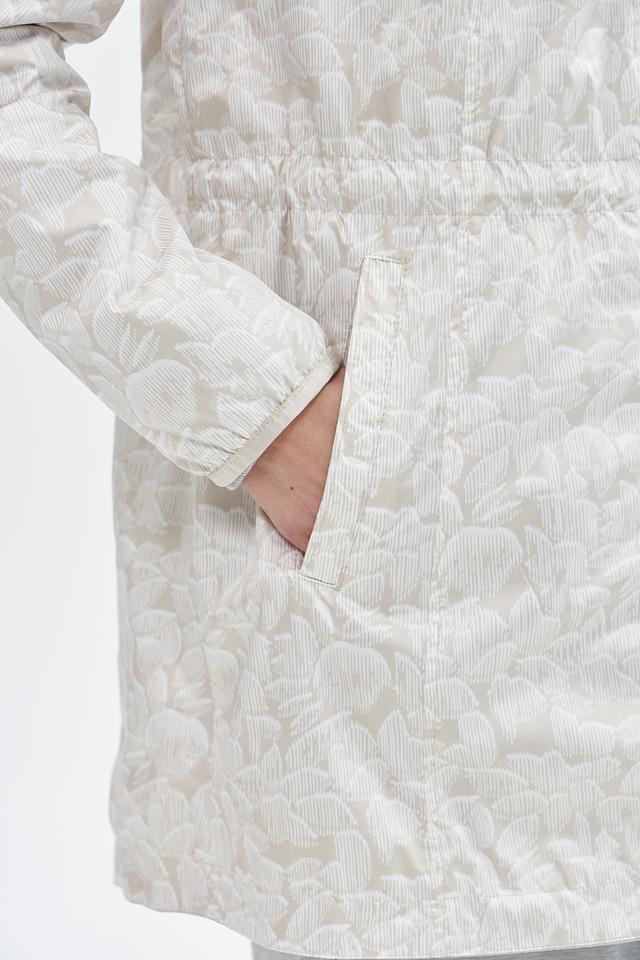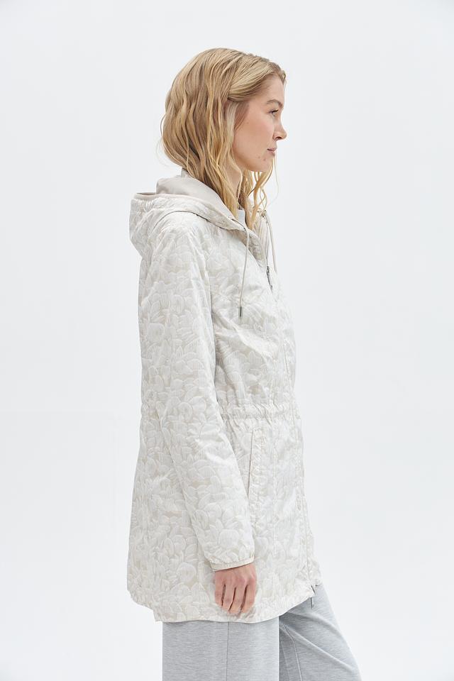 Куртка имеет прямой крой, капюшон со шнурком для регулировки и застегивается на молнию. Боковые карманы на молнии обеспечивают безопасное хранение необходимых вещей.