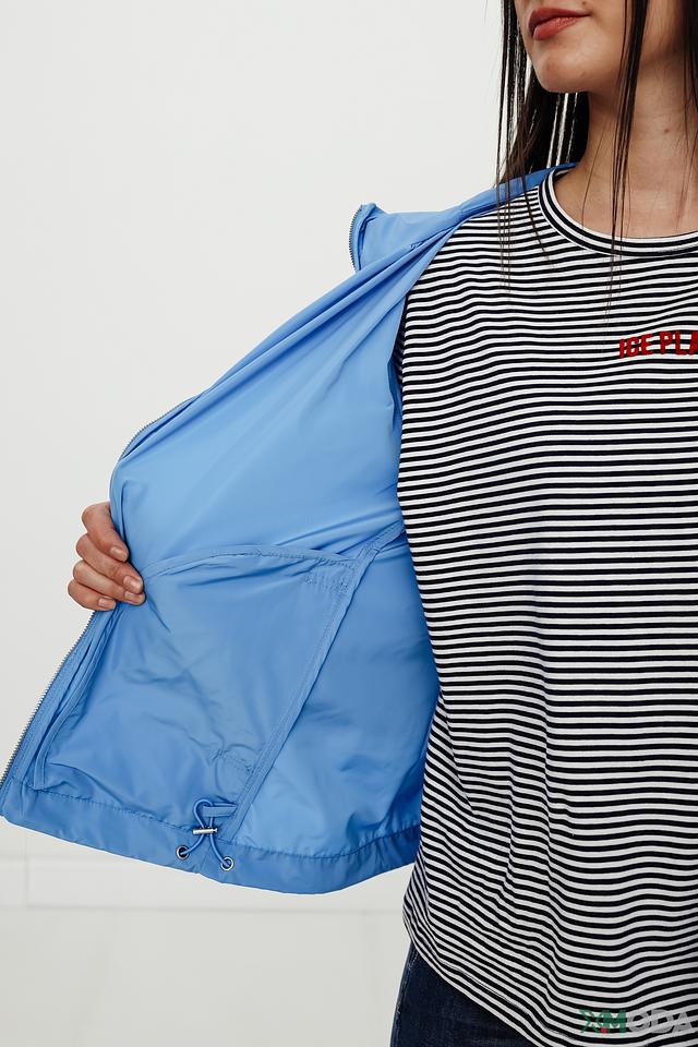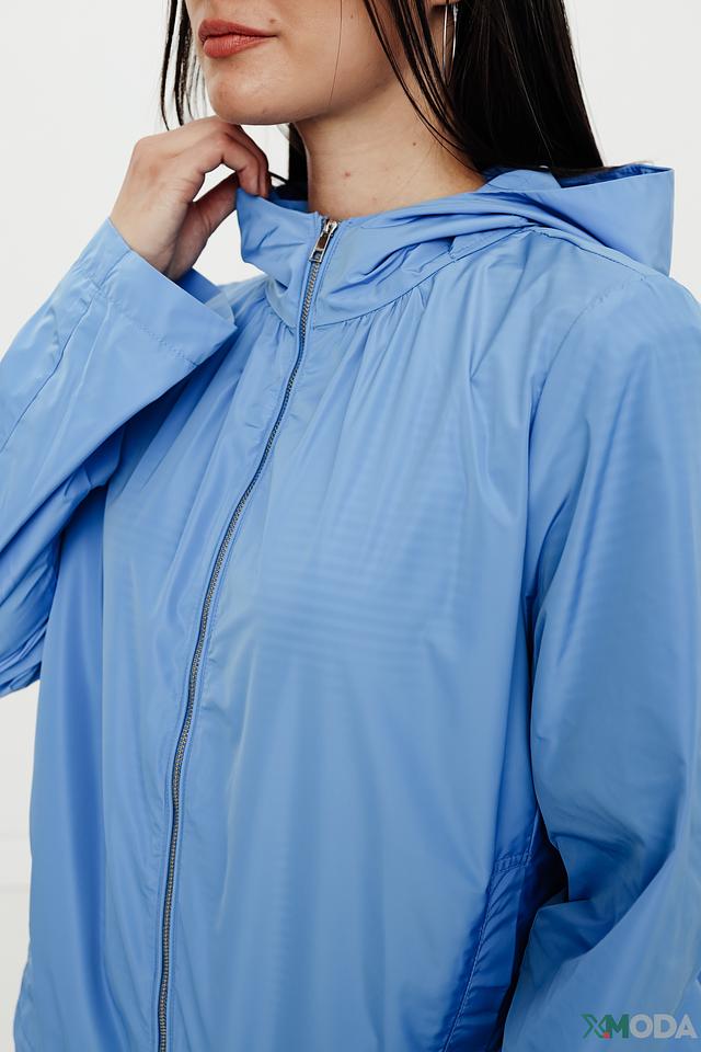 Куртка имеет удобный капюшон, который защитит от ветра и небольшого дождя. Застёжка-молния обеспечивает легкость одевания и снятия. Силуэт куртки слегка приталенный, что подчёркивает фигуру.