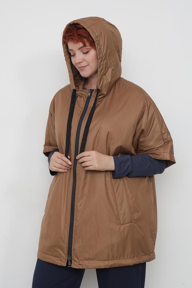 Куртка имеет свободный крой, который обеспечивает комфорт и свободу движений. Короткие рукава делают ее подходящей для теплой погоды, а капюшон защитит от ветра и небольшого дождя.