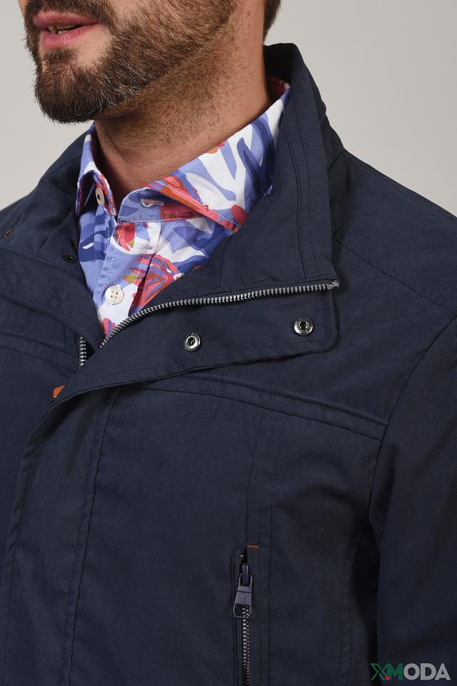 Куртка имеет классический крой, который подходит для большинства типов фигуры. Синий цвет придает ей универсальность, позволяя легко сочетать ее с различными элементами одежды. Застежка-молния обеспечивает надежную фиксацию, а воротник-стойка защищает от ветра.