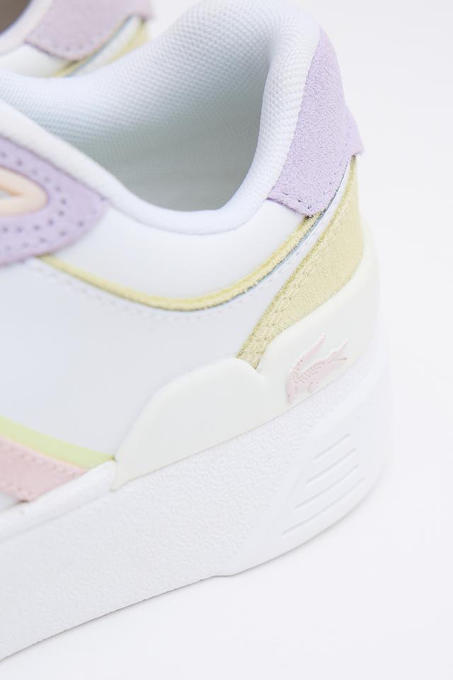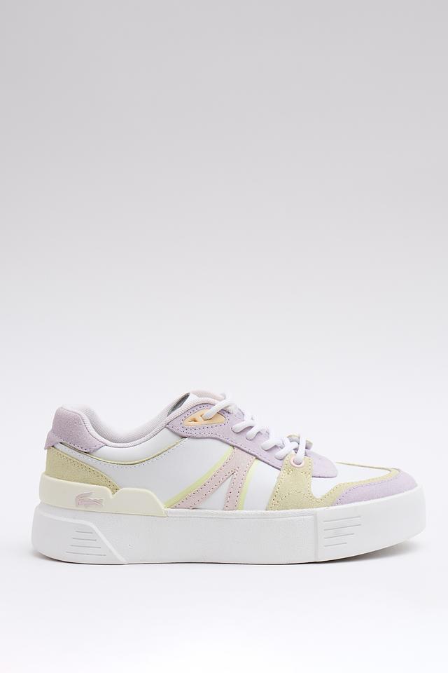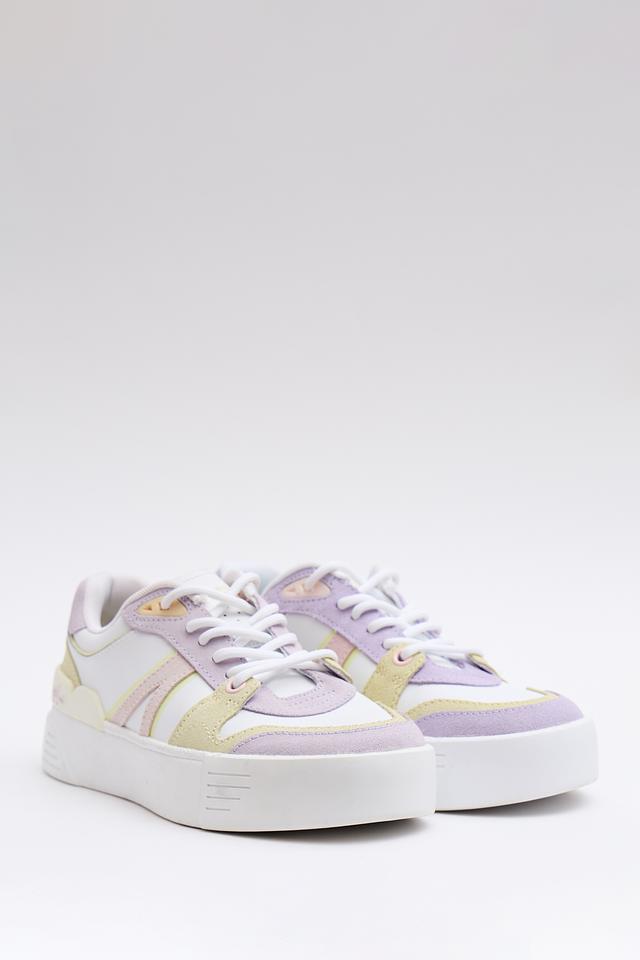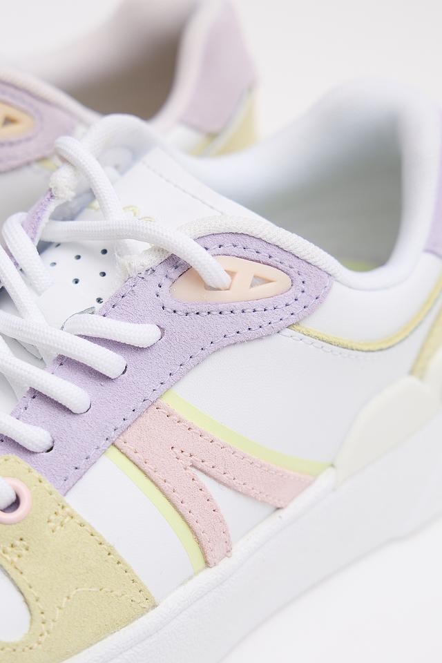 Женские кроссовки Lacoste нежно-лилового, бледно-жёлтого и белого цвета — стильное сочетание цветов и современный дизайн. Модель выполнена из комбинации кожи и замши, обеспечивая комфорт и долговечность. Состав: Состав_подкладка полиэстер 100%, Состав_низ резина 100%, замша 56%, кожа 44%