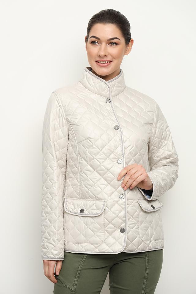 Эта куртка от Lebek выполнена в бежевом цвете и имеет стеганую текстуру, что придает ей особый шарм. Модель застегивается на пуговицы, имеет воротник-стойку и два функциональных кармана на передней части.