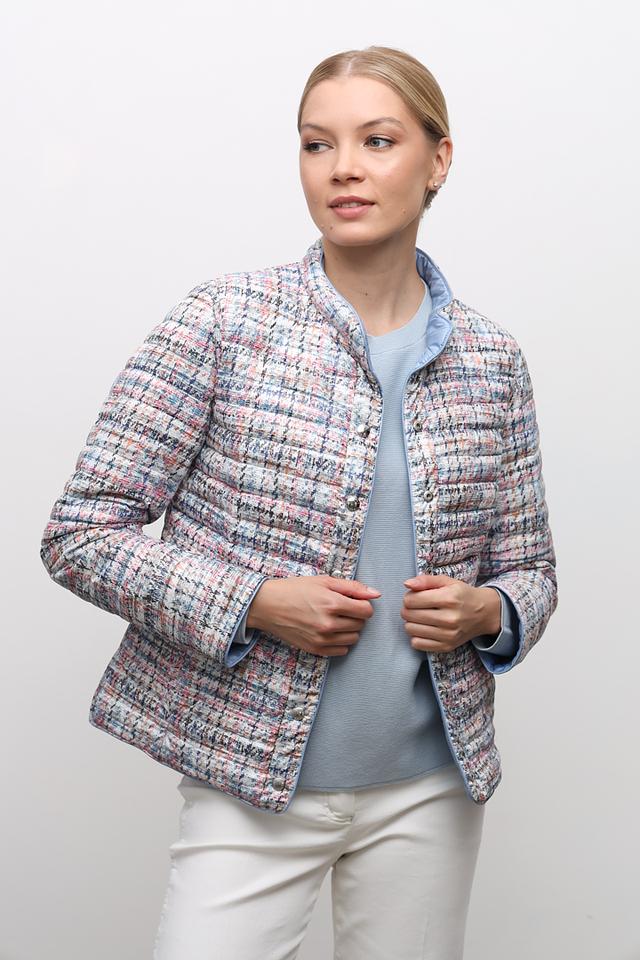 Эта куртка от Lebek станет незаменимой вещью в вашем гардеробе в прохладную погоду. Она выполнена в нежном голубом цвете и имеет стеганую фактуру, что придает ей особый шарм.