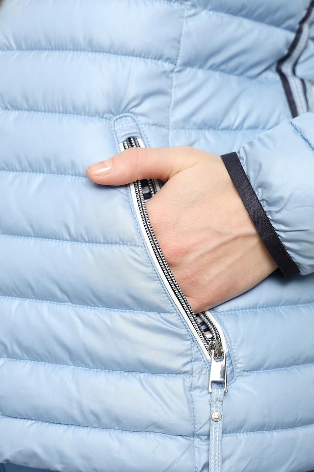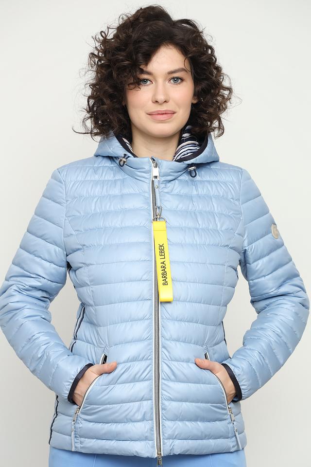 Эта куртка от Lebek станет незаменимой вещью в вашем гардеробе в прохладную погоду. Она выполнена в нежном голубом цвете и имеет стеганую текстуру, что придает ей современный и стильный вид.