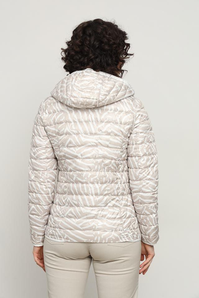 Эта куртка от Lebek выполнена в белом цвете и имеет стеганую фактуру. Модель застегивается на молнию, имеет капюшон и боковые карманы.