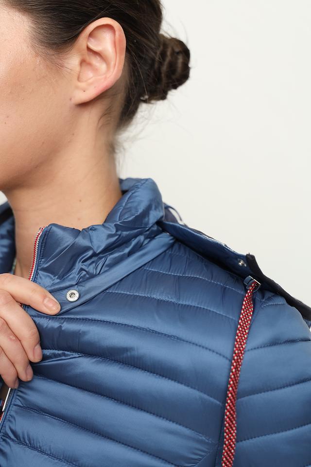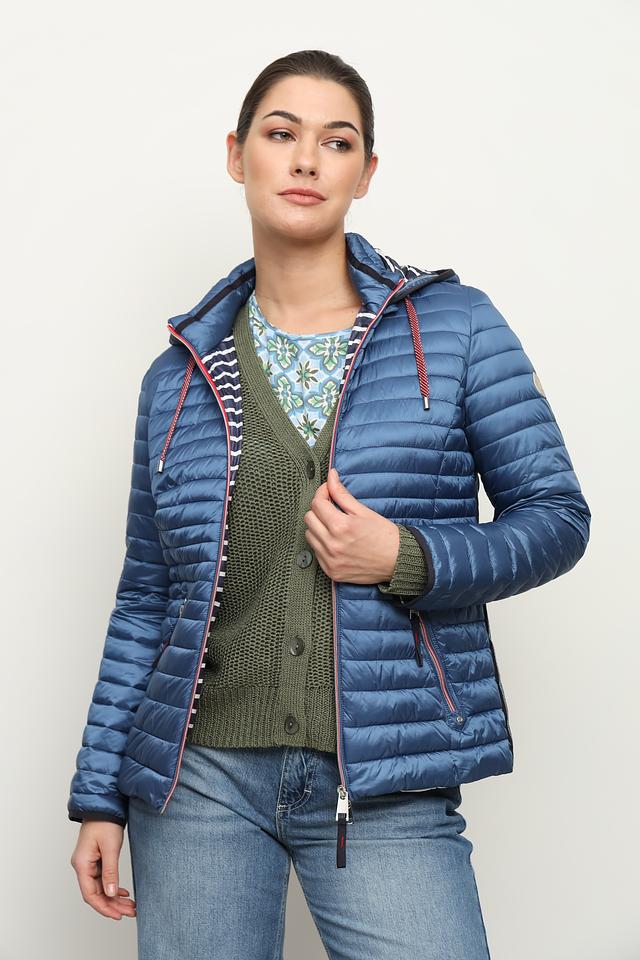 Стеганый дизайн придает куртке современный и стильный вид. Синий цвет модели универсален и легко сочетается с различными элементами одежды. Куртка оснащена удобным капюшоном, который защитит вас от ветра и дождя.