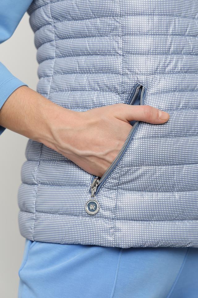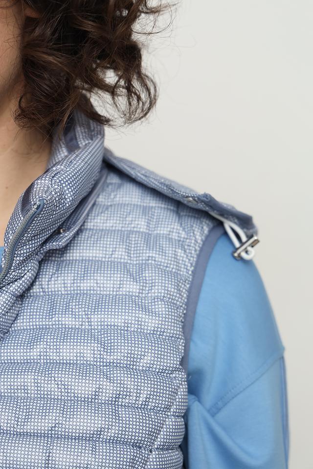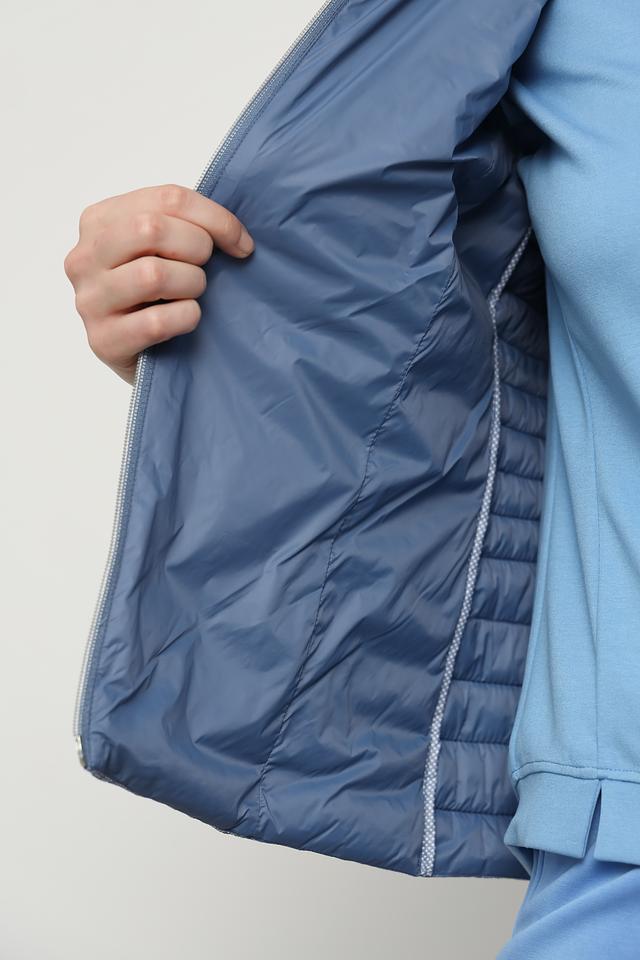 Модель оснащена удобным капюшоном и застежкой-молнией по всей длине. Два боковых кармана на молнии позволяют безопасно хранить необходимые мелочи. Жилет имеет стеганую текстуру, которая обеспечивает дополнительную теплоизоляцию.