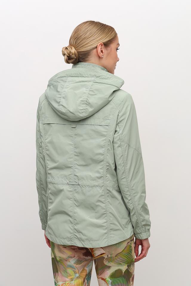 Куртка имеет удобный капюшон, который защитит от ветра и небольшого дождя. Застежка-молния и кнопки обеспечивают надежную фиксацию. Дизайн куртки дополнен функциональными карманами на молнии.