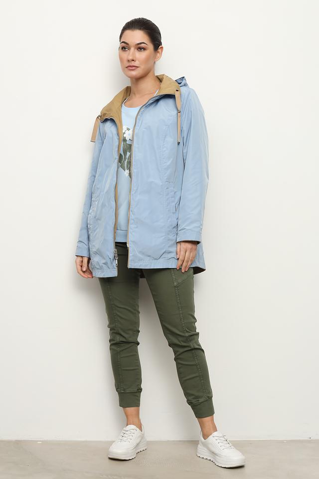 Голубой плащ Lebek – это стильная и практичная верхняя одежда для повседневной носки. Модель выполнена из хлопка с добавлением полиэстера, имеет капюшон и застёжку-молнию. Состав: хлопок 53%, полиэстер 47%