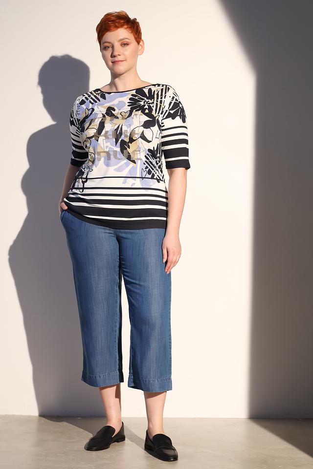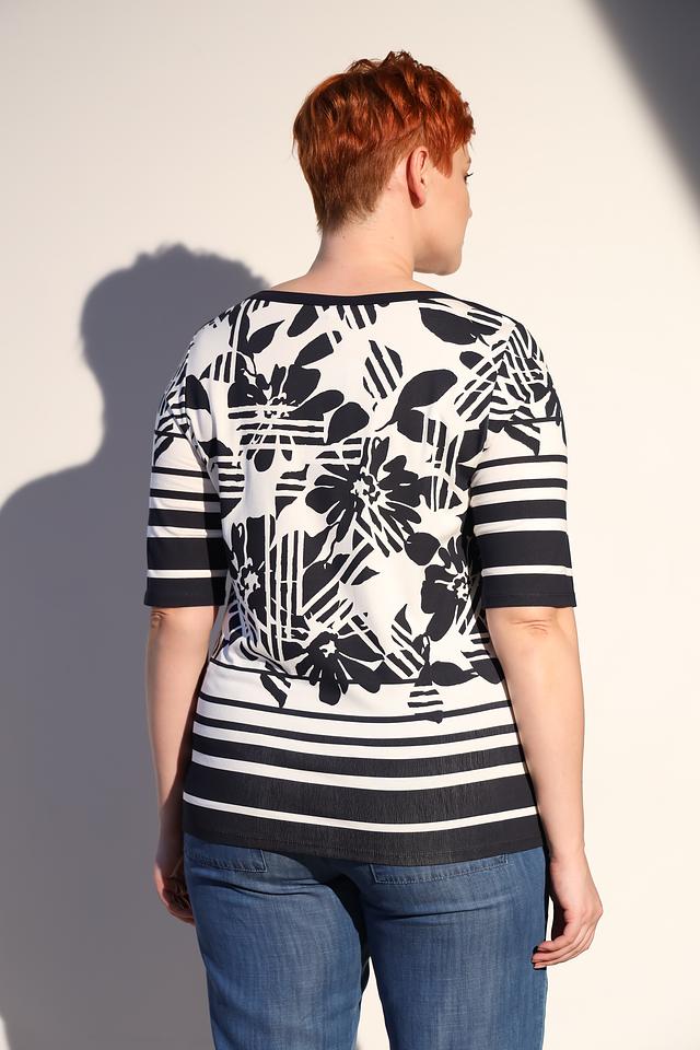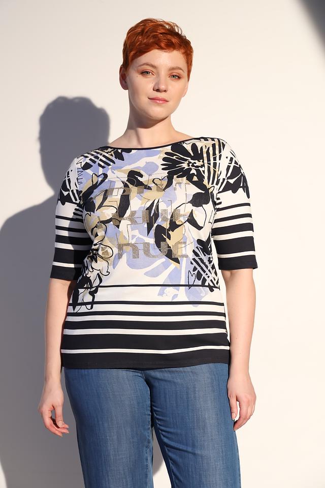 Эта блуза от Lebek – отличный выбор для создания комфортного и стильного образа. Модель выполнена в сочетании чёрного и белого цветов, украшена ярким цветочным принтом, который добавляет образу женственности и легкости.
