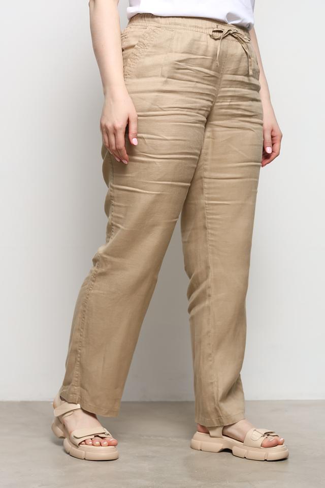 Брюки оснащены боковыми карманами, что добавляет им функциональности. Состав: 100% лен. Рекомендуется деликатная стирка.