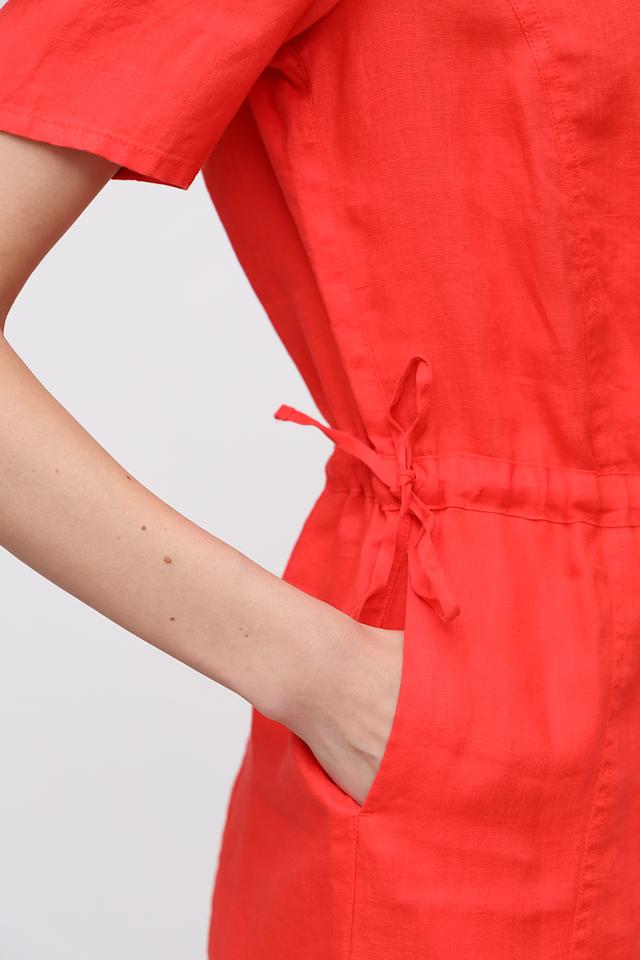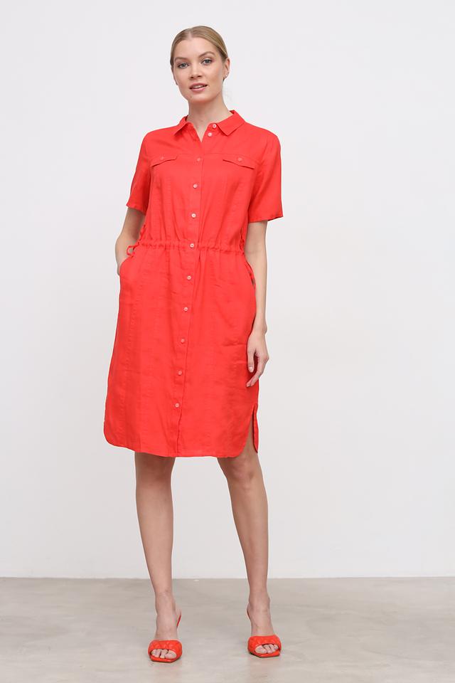 Алое льняное платье от Lebek – стильное и комфортное решение для летнего гардероба. Модель выполнена из натурального льна, имеет рубашечный крой, короткие рукава и пояс, подчеркивающий талию. Состав: лен 100%