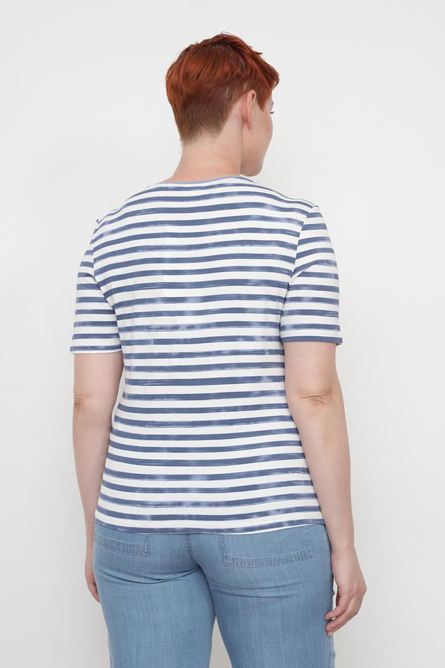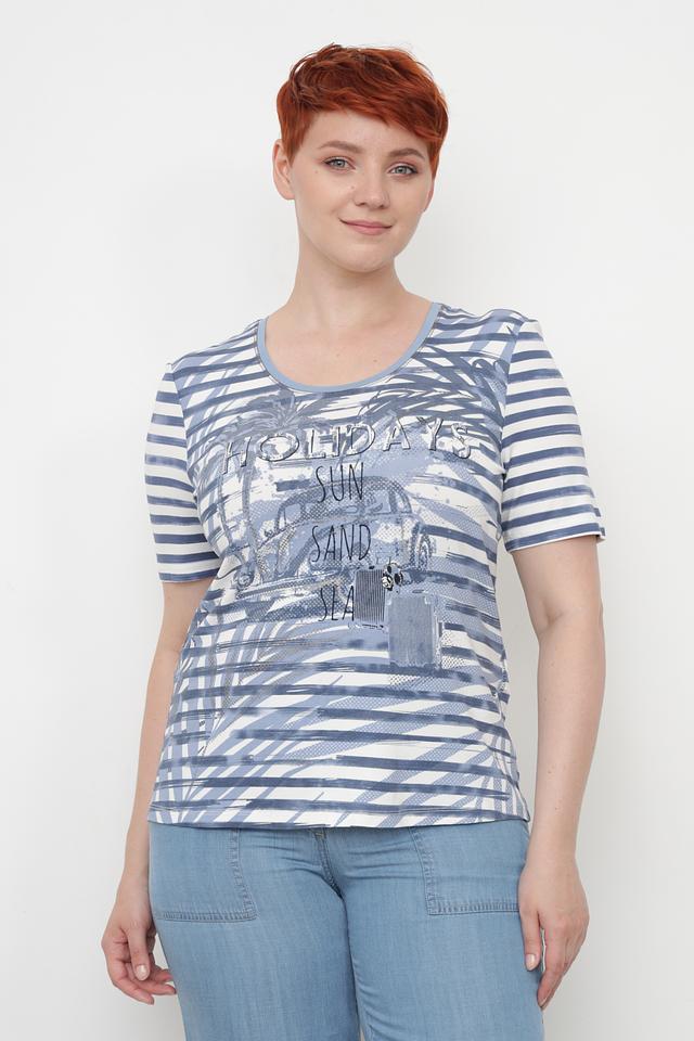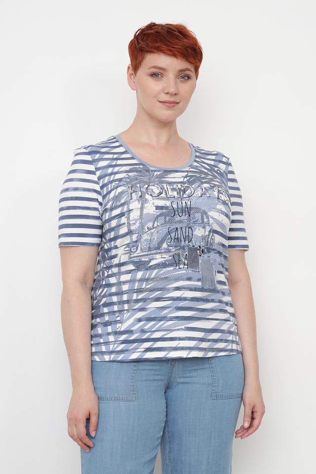 Модель имеет прямой крой и короткий рукав, что обеспечивает свободу движений и комфорт в жаркую погоду. Футболка изготовлена из высококачественной вискозы с добавлением эластана, благодаря чему она приятна к телу, хорошо драпируется и не мнется.