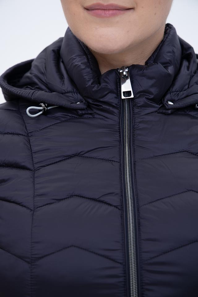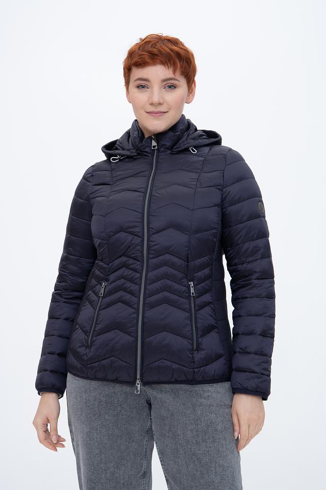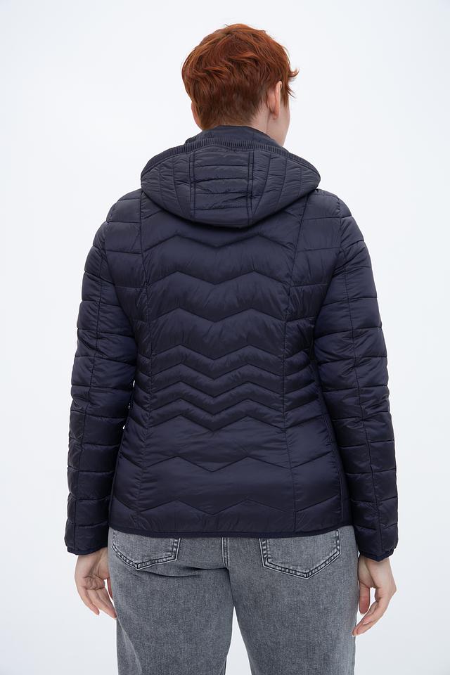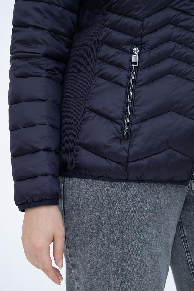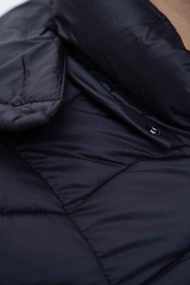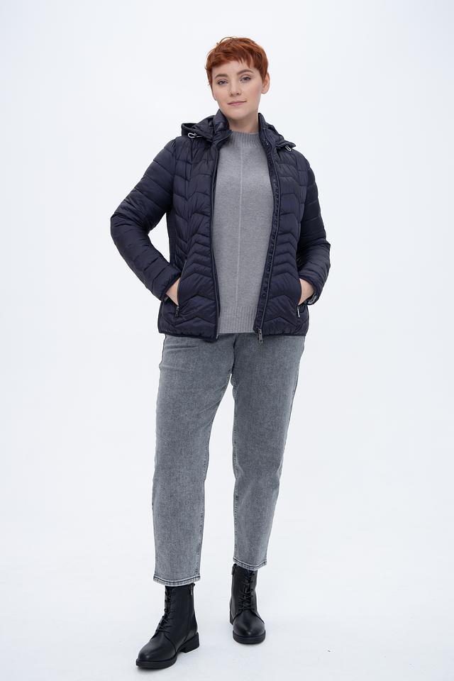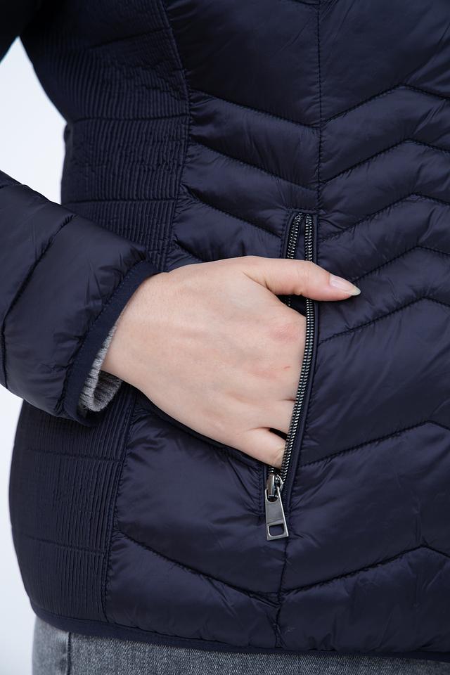 Куртка имеет стеганую фактуру, которая придает ей современный и модный вид. Тёмно-синий цвет делает её универсальной и легко сочетаемой с различными элементами одежды.