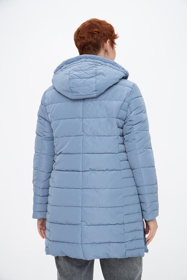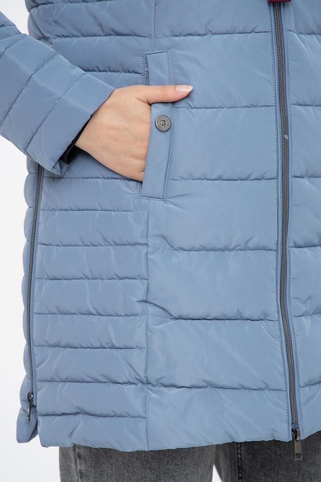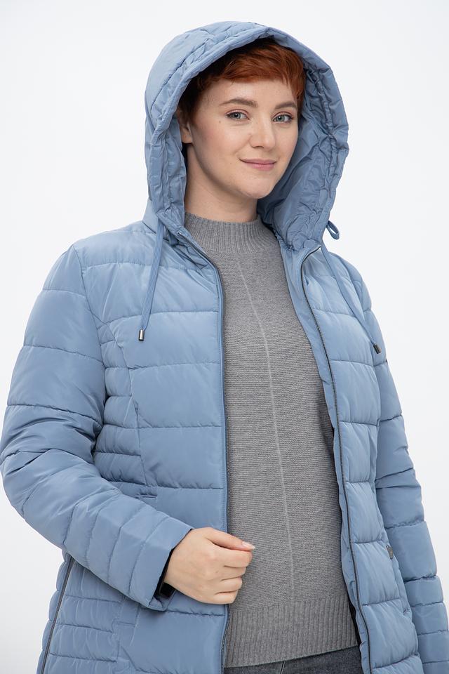 Куртка имеет стеганую текстуру, которая придает ей современный и элегантный вид. Удлиненный крой обеспечивает дополнительное тепло и защиту от ветра, а капюшон позволяет укрыться от дождя или снега.
