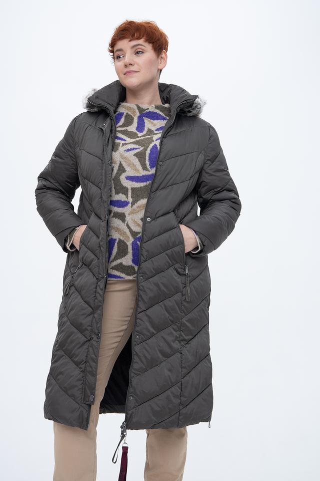 Стильное пальто Lebek серого цвета – это идеальный выбор для холодной погоды. Удлиненный силуэт и стеганая фактура обеспечивают тепло и комфорт, а капюшон с отделкой из искусственного меха добавляет образу изысканности. Состав: полиамид 55%, полиэстер 45%