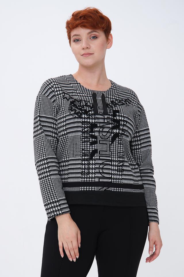 Женский пуловер Lebek чёрно-белого цвета в классическую клетку – стильное и комфортное решение для повседневного гардероба. Модель выполнена из мягкого трикотажа с добавлением вискозы и эластана, что обеспечивает приятные тактильные ощущения и хорошую посадку по фигуре. Состав: полиэстер 77%, вискоза 21%, эластан 2%