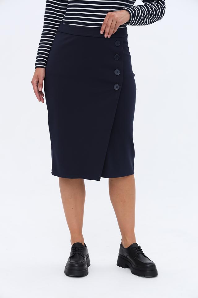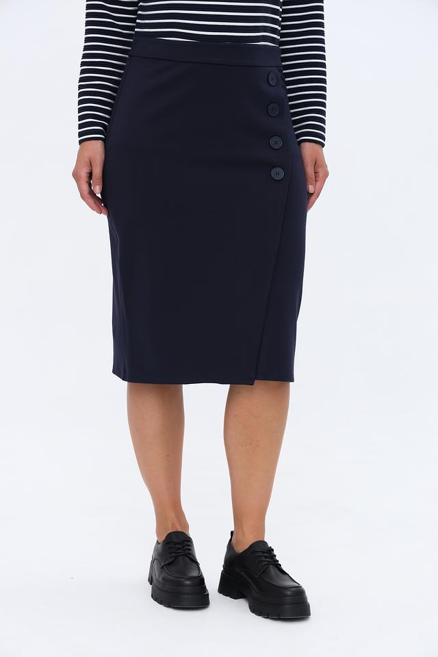Юбка Barbara Lebek темно-синего цвета – элегантная модель с асимметричным кроем и декоративными пуговицами. Идеально подходит для создания стильных образов в офисе и на каждый день. Состав: вискоза 70%, полиамид 25%, эластан 5%