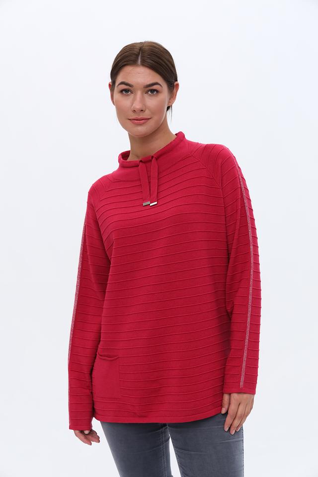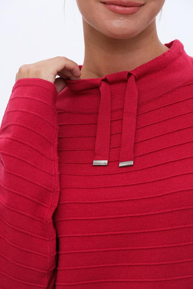 Малиновый пуловер от Lebek с капюшоном и горизонтальной текстурой. Изготовлен из сочетания акрила, хлопка и полиамида, обеспечивая комфорт и удобство в носке. Подходит для создания стильных повседневных образов. Состав: полиакрил 45%, хлопок 45%, полиамид 10%