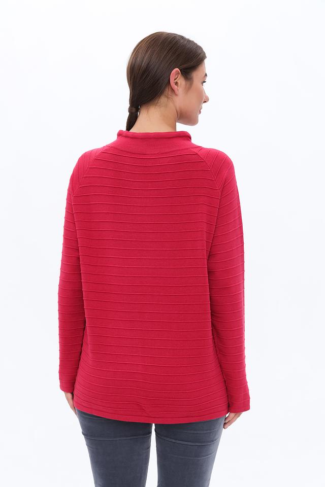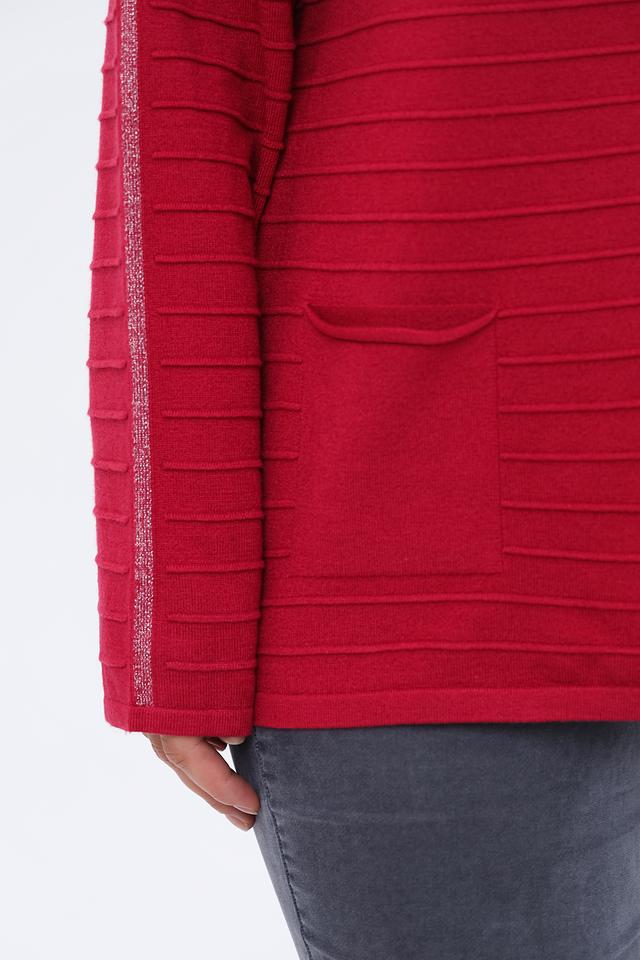 Особенностью данного пуловера является горизонтальная текстура, создающая визуальный интерес и придающая изделию объем. Пуловер имеет слегка свободный крой, который обеспечивает комфорт при носке и позволяет легко сочетать его с различными элементами одежды.