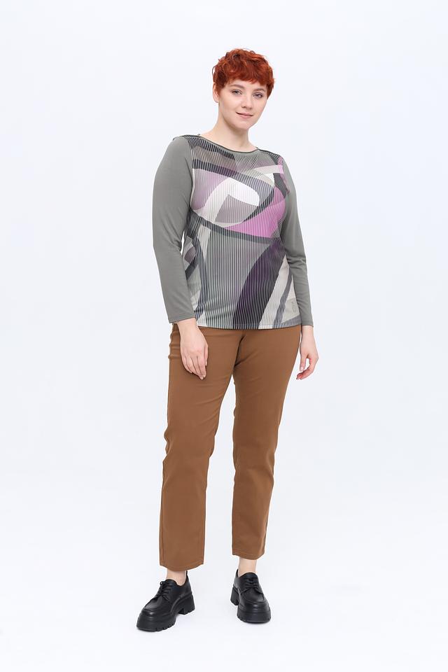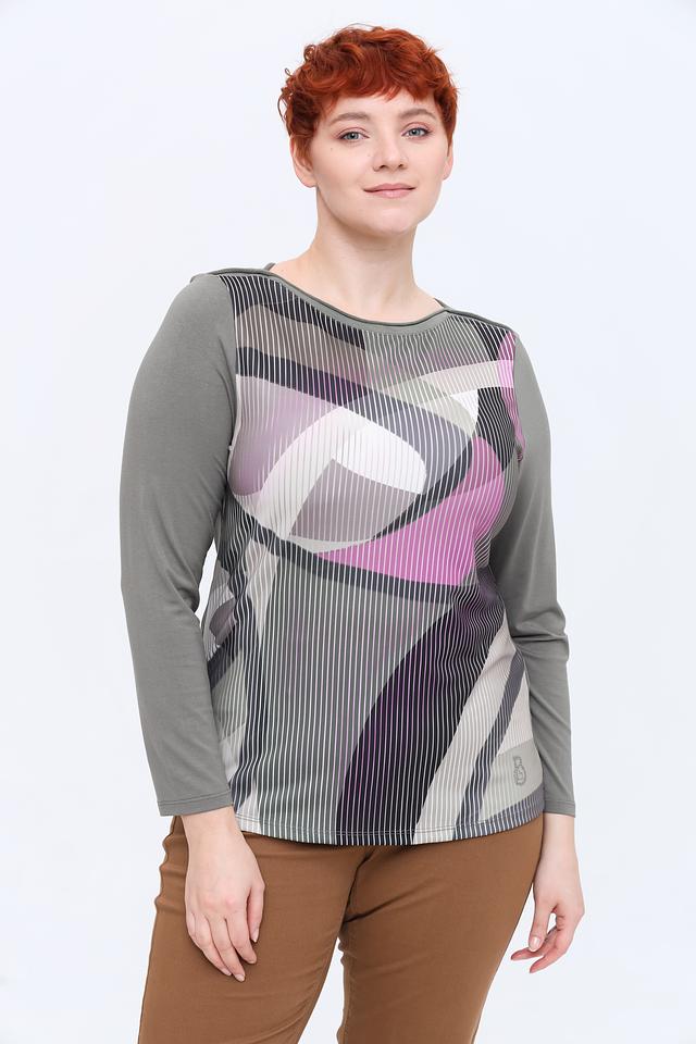 Женский лонгслив Lebek серого цвета с оригинальным геометричным принтом. Изготовлен из мягкой вискозы с добавлением эластана для комфортной посадки и свободы движений. Идеально дополнит повседневный образ. Состав: вискоза 95%, эластан 5%