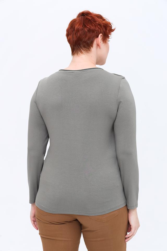 Вырез горловины – округлый, с небольшим декоративным кантом. Лонгслив прекрасно сочетается с джинсами, брюками или юбками, позволяя создавать разнообразные образы. Состав: 95% вискоза, 5% эластан.